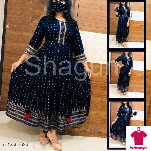 Fabric: Rayon Sleeve Length: Sleeveless Pattern: Printed Combo of: Single Sizes: XL (Bust Size: 42 in, Size Length: 50 in) L (Bust Size: 40 in, Size Length: 50 in) XXL (Bust Size: 44 in, Size Length: 50 in) M (Bust Size: 38 in, Size Length: 50 in) Country of Origin: India