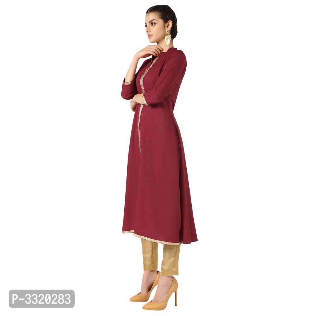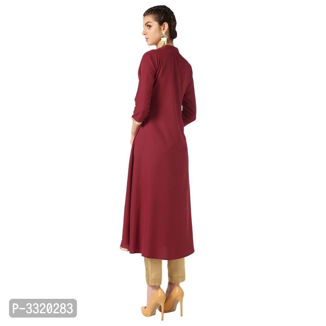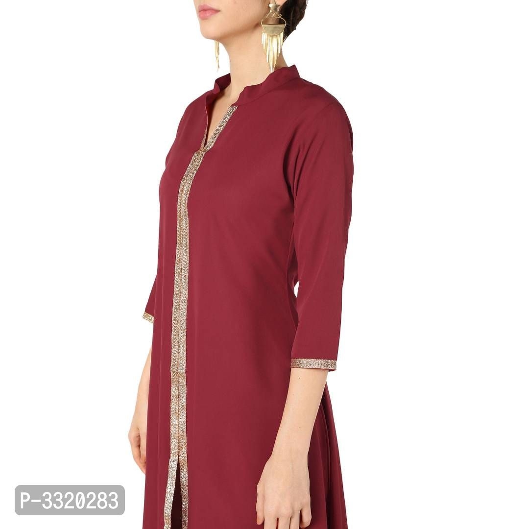 Color: Maroon Fabric: Crepe Type: Stitched The model (height 5'8") is wearing a size S. Colors may be minor vary from what was mentioned because of different screen resolution.