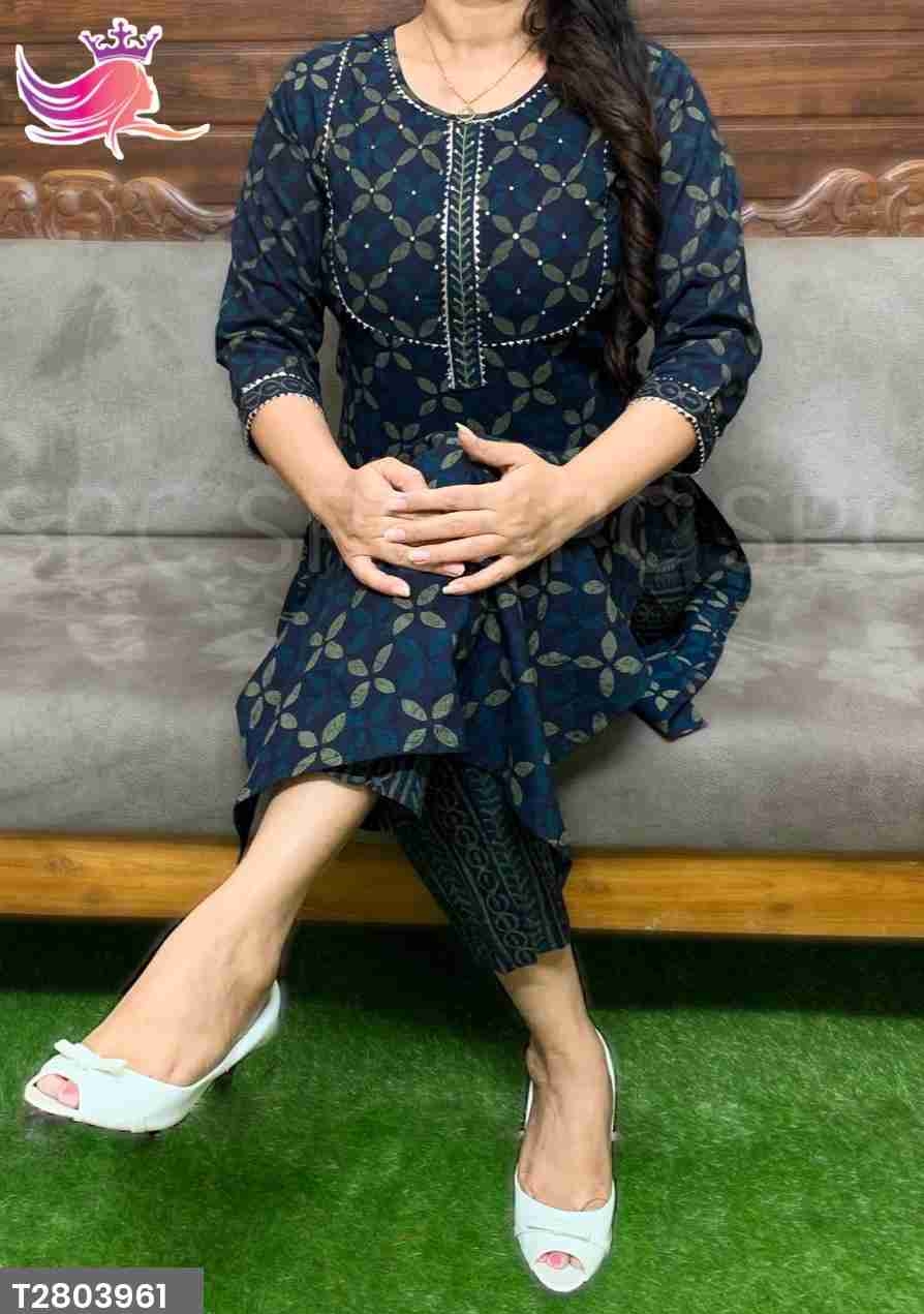 Fabric:* Cotton *Colour:* Blue *Stitch Type:* Stiched *Bottom Type:* Pants *Bottomwear Color:* Blue *Bottomwear Fabric:* Cotton *Kurta Color:* Blue *Kurta Fabric:* Cotton *Set Type:* Kurta With Bottomwear