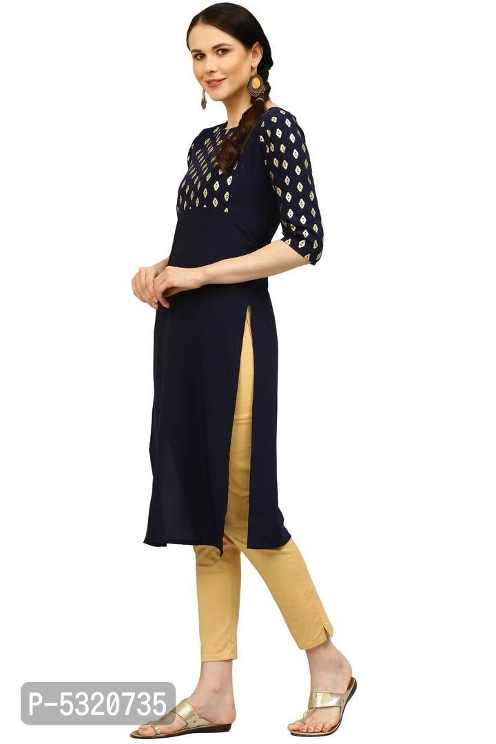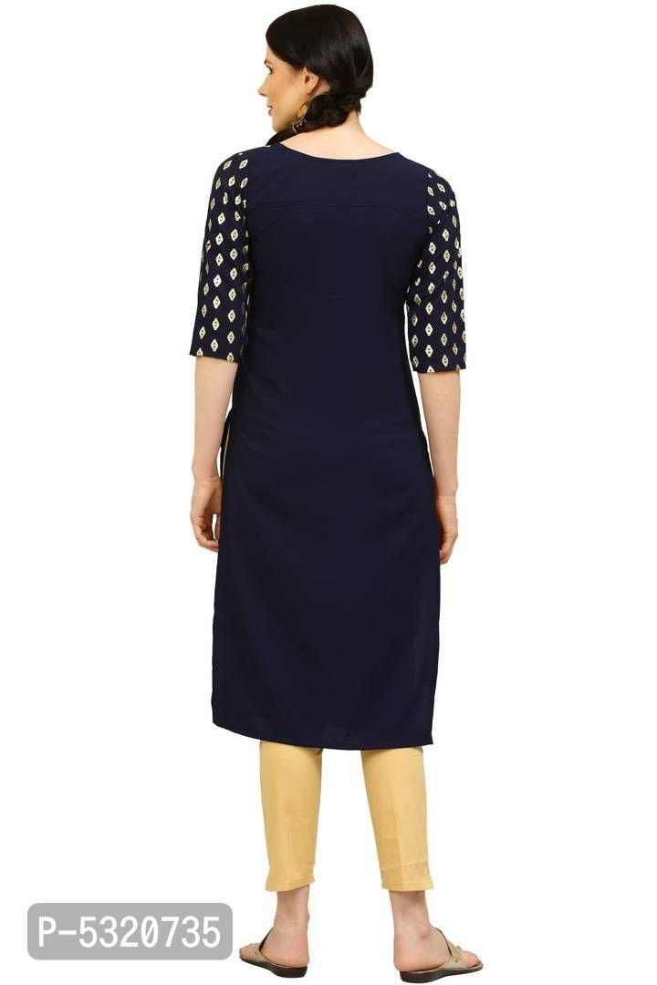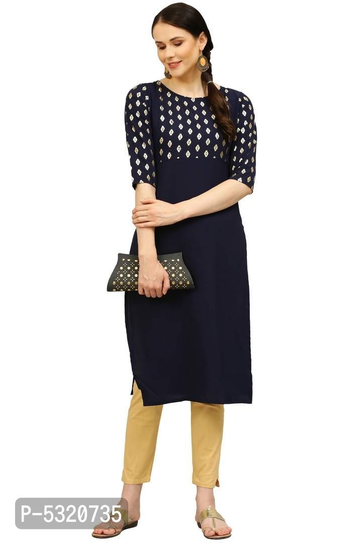 Color: Navy Blue Fabric: Crepe Type: Stitched Style: Printed Design Type: Straight