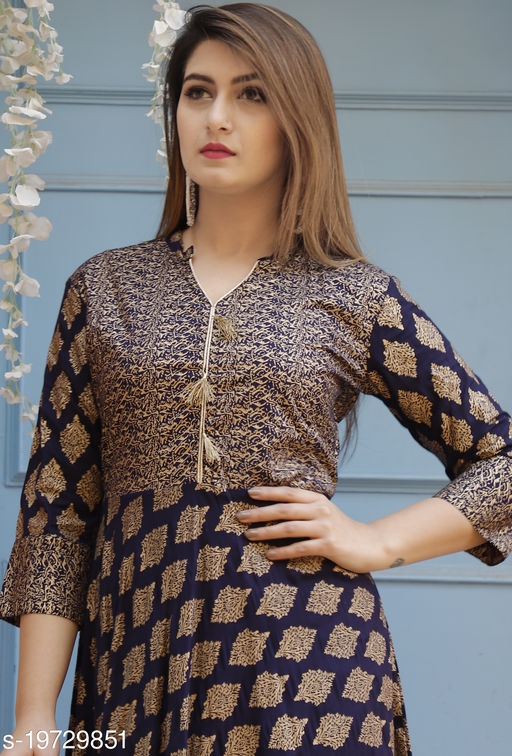 Fabric: Rayon Sleeve Length: Three-Quarter Sleeves Pattern: Printed Combo of: Single "Sizes: M (Bust Size - 38 in , Length Size - 50) L (Bust Size - 40 in , Length Size - 50) XL (Bust Size - 42 in , Length Size - 50) XXL (Bust Size - 44 in , Length Size - 50)" Country of Origin: India