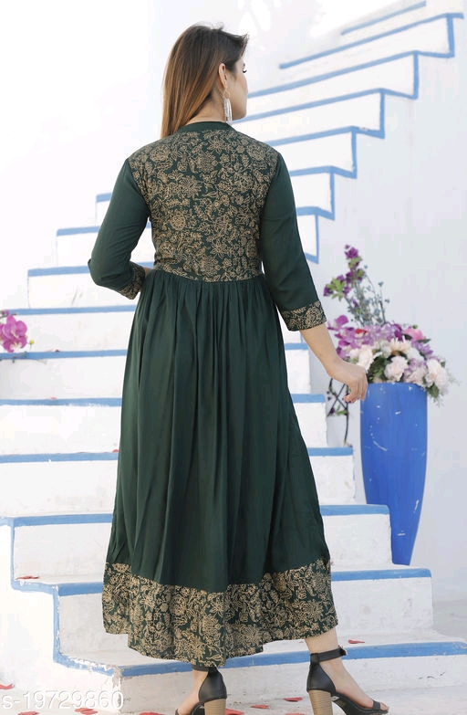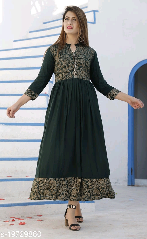 Fabric: Rayon Sleeve Length: Three-Quarter Sleeves Pattern: Printed Combo of: Single "Sizes: M (Bust Size - 38 in , Length Size - 50) L (Bust Size - 40 in , Length Size - 50) XL (Bust Size - 42 in , Length Size - 50) XXL (Bust Size - 44 in , Length Size - 50)" Country of Origin: India