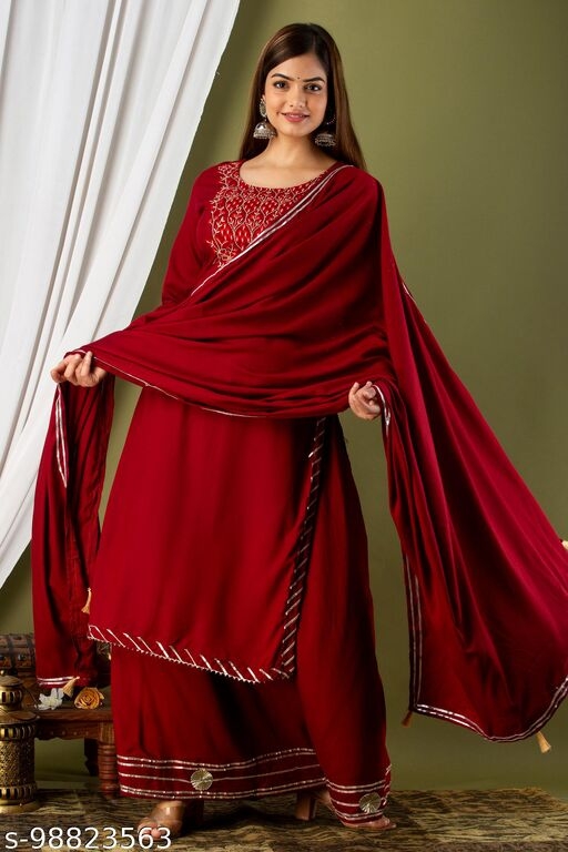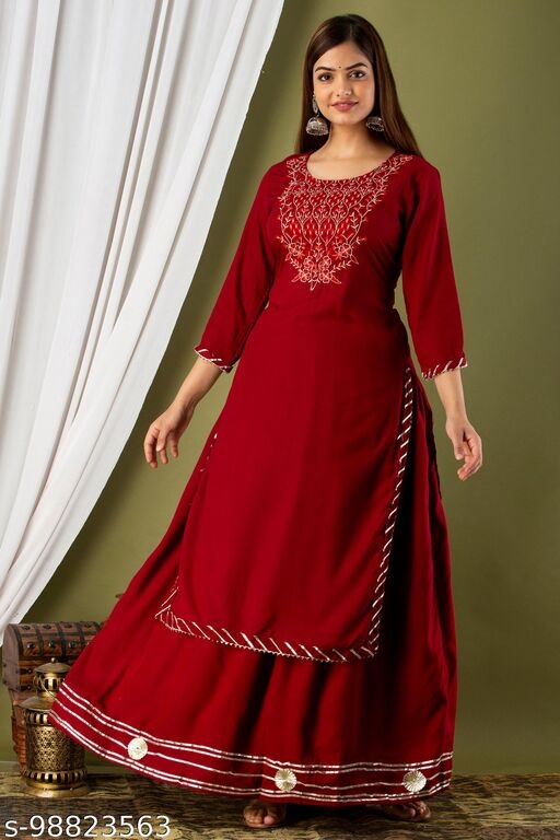 Name: WOMEN'S PARTY WEAR RAYON ZARI EMBROIDERY KURTA WITH LESH WORK SKIRT DUPATA SET